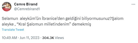 “Selamun aleyküm’ün İbranice’den geldiğini biliyormusunuz?Şalom aleyke , “Kral Şalomun milletindenim” demekmiş”