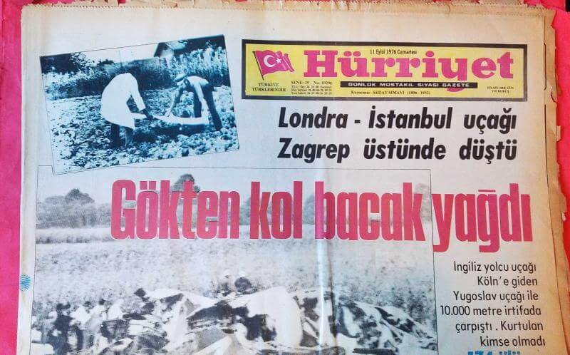 10 Eylül 1976 günü İngiliz Hava Yolları’na ait Londra-İstanbul yolcu uçağı, Zagreb üzerinde Yugoslav Hava Yolları’na ait bir başka uçakla çarpıştığı kaza, havacılık tarihinin en büyük kazası değil; tarihin en çok ölümlü uçak kazalarından biri.