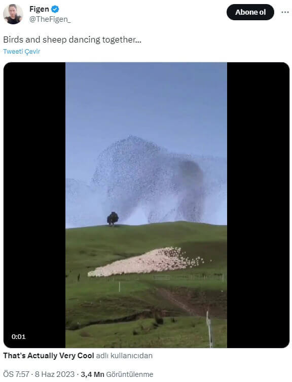 Sığırcık sürüsünün koyun sürüsünün üzerinden uçtuğu görülen hızlandırılmış video aslında 2 farklı görüntü kullanılarak oluşturulmuş.