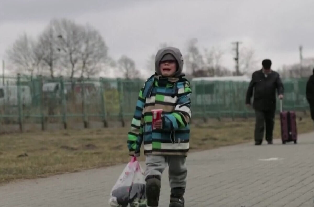 Elinde sırt çantası ve oyuncağı, üzerinde kapüşonlu ceket ve başlığıyla ağlayarak görüntülenen 4 yaşındaki çocuğun, Polonya-Ukrayna sınırını geçerken yanında annesi ve büyükannesi bulunuyordu.