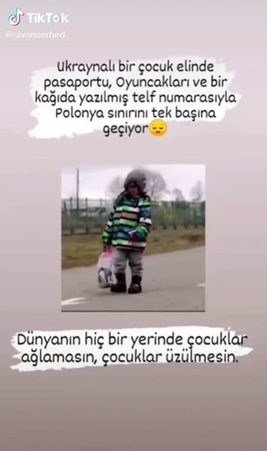 Son günlerde, Ukraynalı bir çocuğun elinde pasaportu, oyuncakları ve bir kağıda yazılmış telefon numarasıyla Polonya sınırını tek başına geçtiği iddiasıyla bir video paylaşılmıştı.
