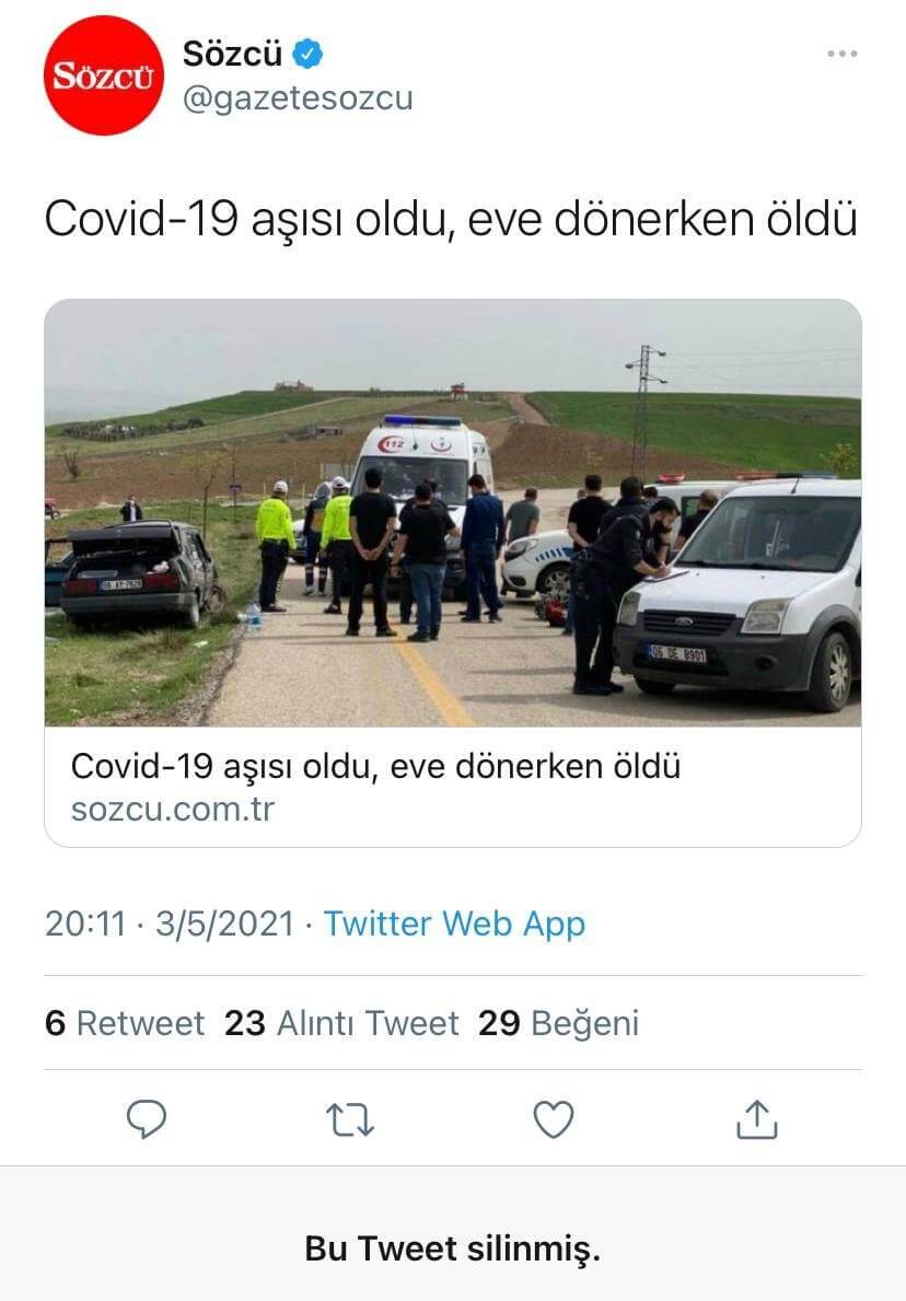 Sözcü, aşı olduktan sonra evine dönerken meydana gelen trafik kazasında yaşamını yitiren vatandaşlar hakkında hazırladıkları haber için “Covid-19 aşısı oldu, eve dönerken öldü” başlığını seçmişti.