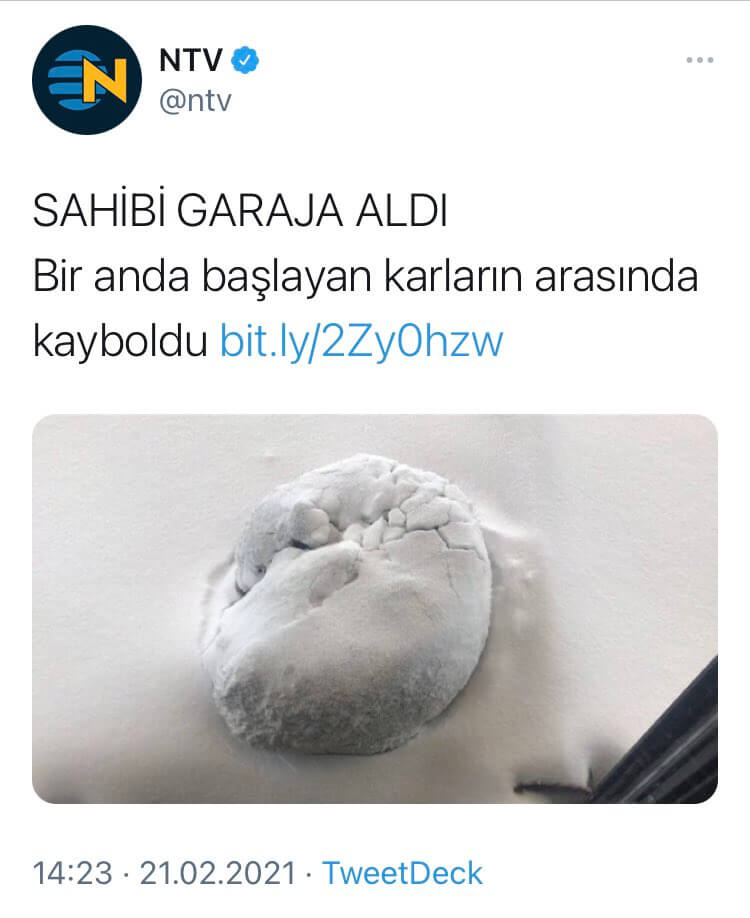 Kar altında görüntülenen sokak köpeği için atılan “Lapa lapa yağan kar, sokak köpeğine ‘örtü’ oldu” başlığı gelen tepkilerin ardından “Bir anda başlayan karın içinde kayboldu”ya evrilmişti.