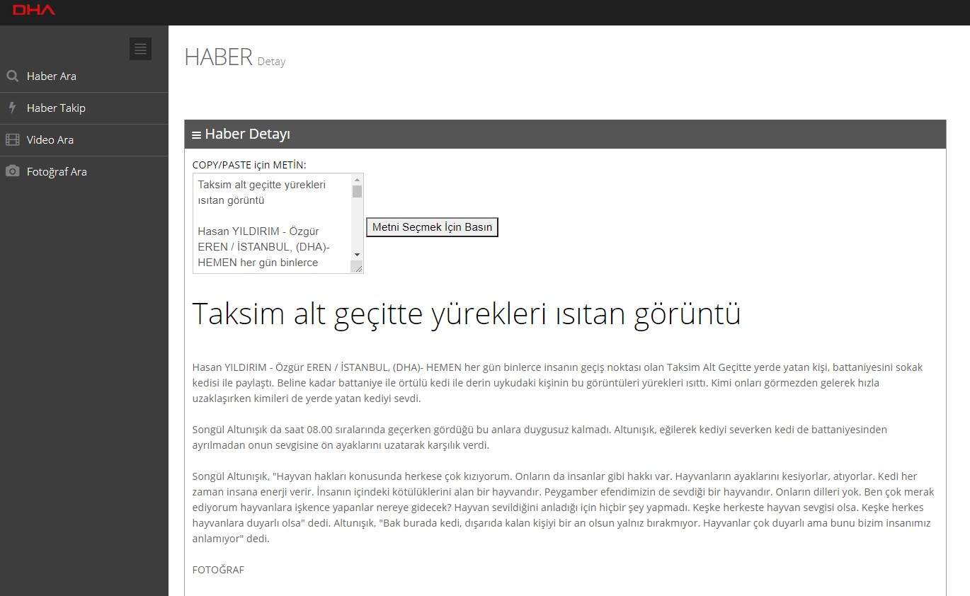 Haber metni şu şekildeydi: