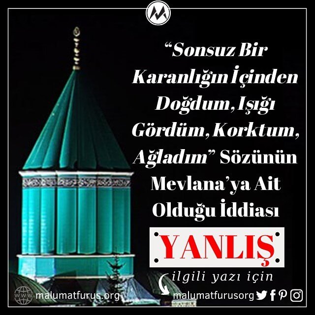 “Sonsuz Bir Karanlığın İçinden Doğdum, Işığı Gördüm, Korktum, Ağladım” Şeklinde Başlayan Sözlerin Mevlana’ya Ait Olduğu İddiası Asılsız