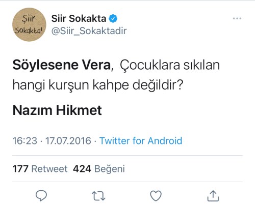 Bugün sosyal medya platformlarında sıkça paylaşılan ve Nâzım Hikmet’e (1902-1963) atfedilen “Söylesene Vera, çocuklara sıkılan hangi kurşun kahpece değildir?” sözüne değineceğiz.