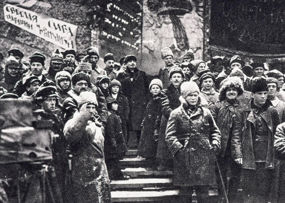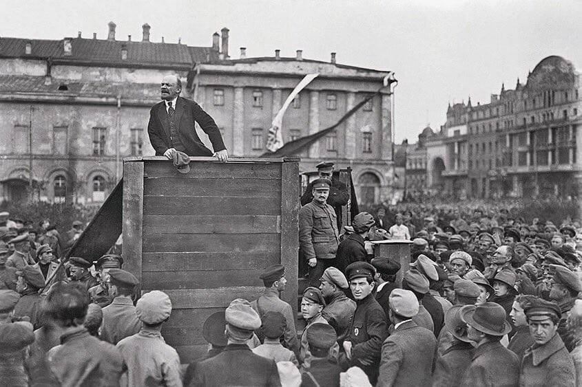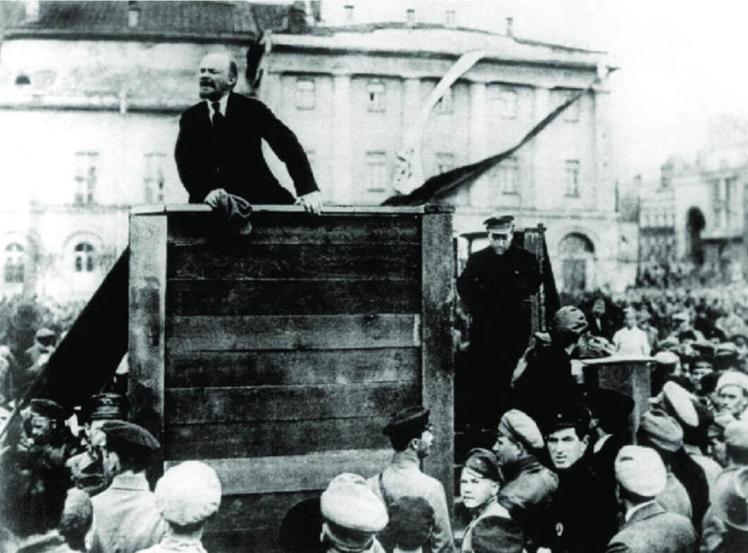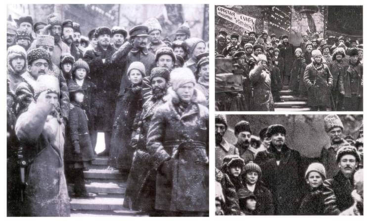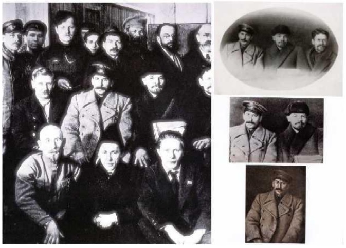 Vladimir Lenin’in Polonya cephesine ilerleyen Kızıl Ordu askerlerine 1920 yılında konuşma yaptığı kürsünün solunda yer alan (1940 yılında suikastla öldürülen) Lev Troçki ve (1936 yılında vatana ihanet suçlamasıyla yargılanıp idam edilen) Lev Kamenev de Stalin’in tarihten silmek için fotoğraflardan montajla çıkarttığı siyasî hasımları olmuştu.