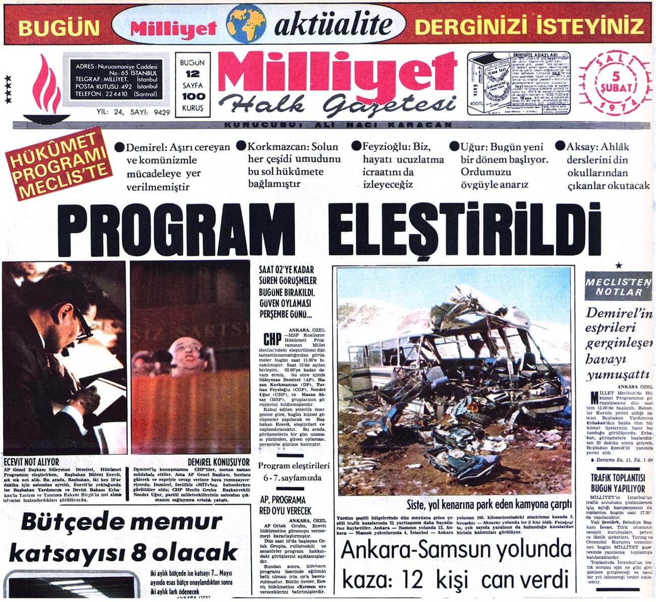 İlgili dönemde Süleyman Demirel liderliğindeki Adalet Partisi’nin CHP-MSP koalisyon hükûmetinin programına red oyu vereceği gazetelerde aktarılmıştı.