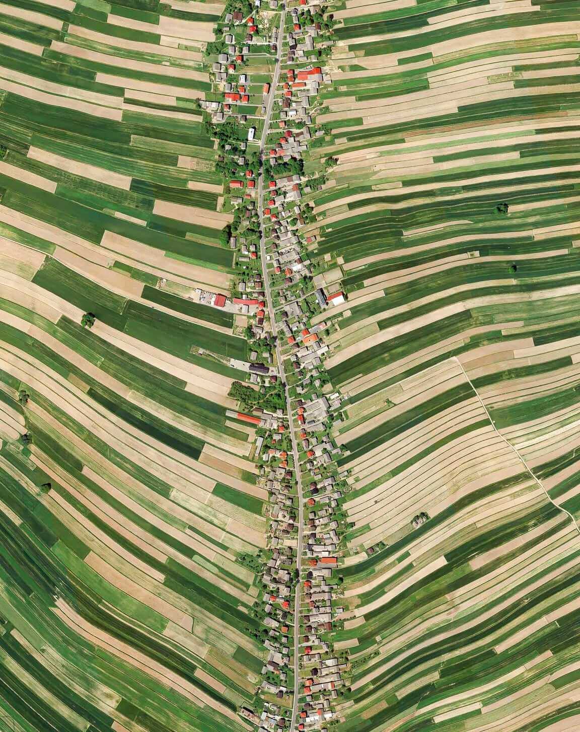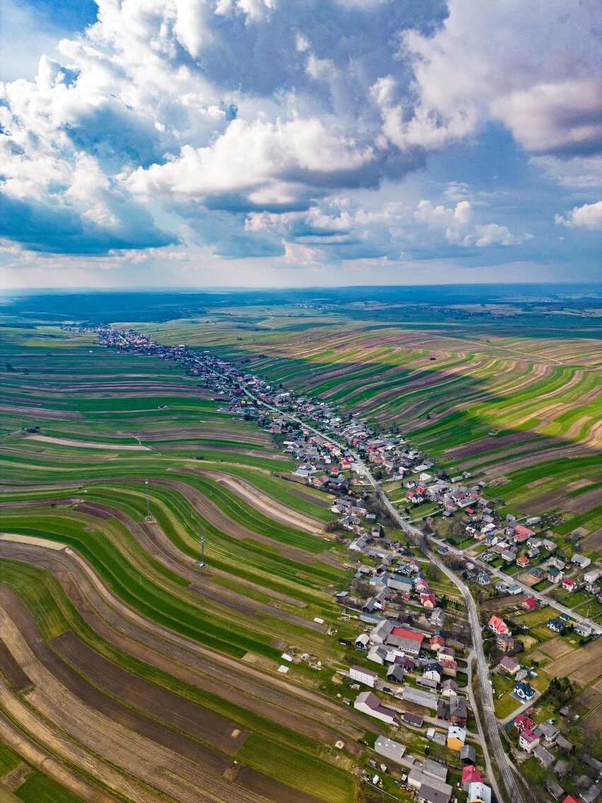 Yeşil, sarı, kahverengi şeritler halinde uzanan tarlalar ve bir sokak boyunca uzanan evleriyle ünlü Sułoszowa, son günlerde sosyal medyada paylaşılan aşağıdaki görselle gündeme geldi.