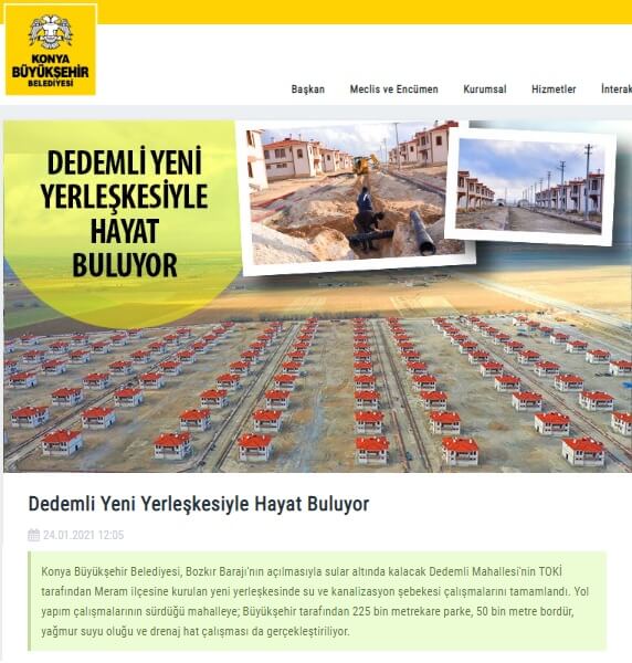 Bozkır Barajı’nın faaliyete girmesiyle sular altında kalacak Konya’nın Hadim ilçesindeki Dedemli Mahallesi için Toplu Konut İdaresi (TOKİ) tarafından Meram ilçesi sınırlarına yeni yerleşke inşa edilmişti.