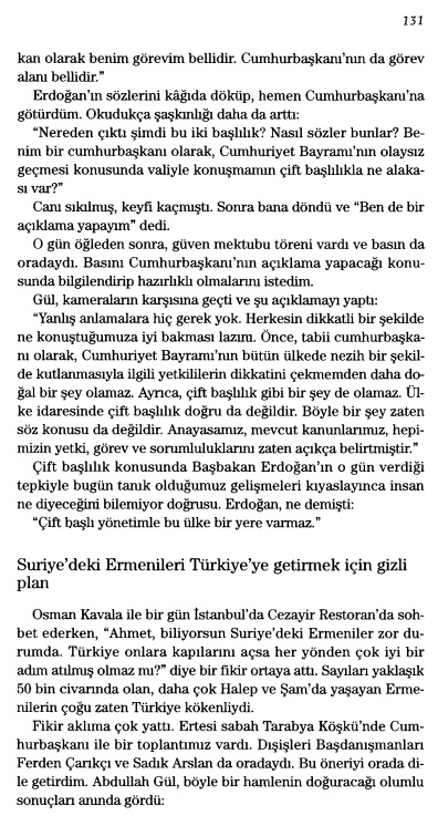 Kitaptan ilgili bölüm şu şekildeydi (Ahmet Sever (2015). Abdullah Gül ile 12 Yıl – Abdullah Gül ile 12 Yıl. Doğan Kitap. 30. Baskı. Sf: 131-134):