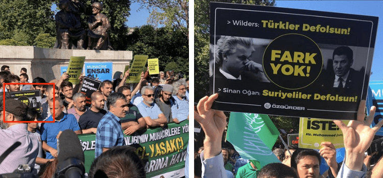 27 Temmuz 2019 tarihinde düzenlenen mitingde “Türkler Defolsun” yazılı pankart açıldığı da iddia edilmişti. Ancak, pankartın orijinalinde söz konusu ifade göçmen karşıtı söylemleriyle bilinen Hollandalı politikacı Geert Wilders’e atfen kullanılmıştı. Pankartı elinde tutan şahıs, yaptığı sosyal medya paylaşımlarında hedef gösterildiğini belirtmiş ve pankart görselinin tamamını paylaşmıştı. (Farklı ülkelerdeki siyasetçileri eleştirmek için kullanılan bahse konu pankart görselin arka planına Teyit.org konuyla ilgili analizinde değinmişti).