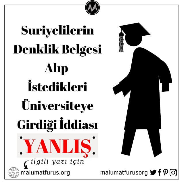 Ancak, “Gaziantep’te Suriyelilere lise denklik belgesi veriliyor. Onlarda bu belge ile istedikleri Türk üniversitelerine başvurma hakkına sahip oluyor.” iddiası asılsızdır.