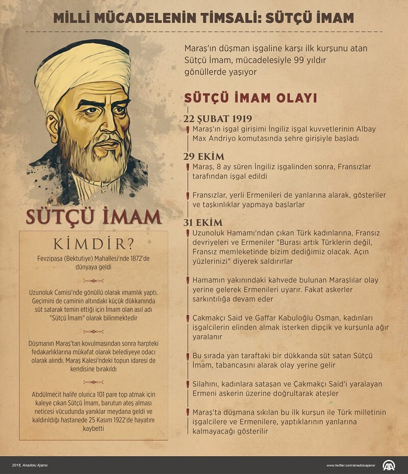 Sütçü İmam (Uzunoluk) Olayı’ diye bilinen hadisenin olduğu 31 Ekim 1919 tarihi, Maraş Millî Mücadelesinde şanlı bir direnişin başladığı gündür.
