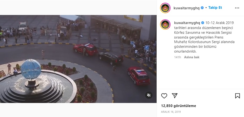 Videonun farklı açılardan çekimleri Kuveyt Ordusu’nun Instagram hesabında 16 Aralık 2019 günü “10-12 Aralık 2019 tarihleri arasında düzenlenen beşinci Körfez Savunma ve Havacılık Sergisi sırasında gerçekleştirilen Prens Muhafız Kolordusunun Sergi alanında gösteriminden bir bölümü sergilendi” notuyla paylaşılmış.