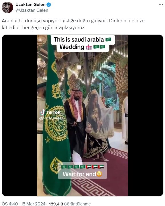 Geçtiğimiz Mart ayında söz konusu görüntü, şeriatla yönetilen Suudi Arabistan’dan düğünlerin daha seküler ve şatafatlı olması eleştirilerek gündeme taşınmıştı.
