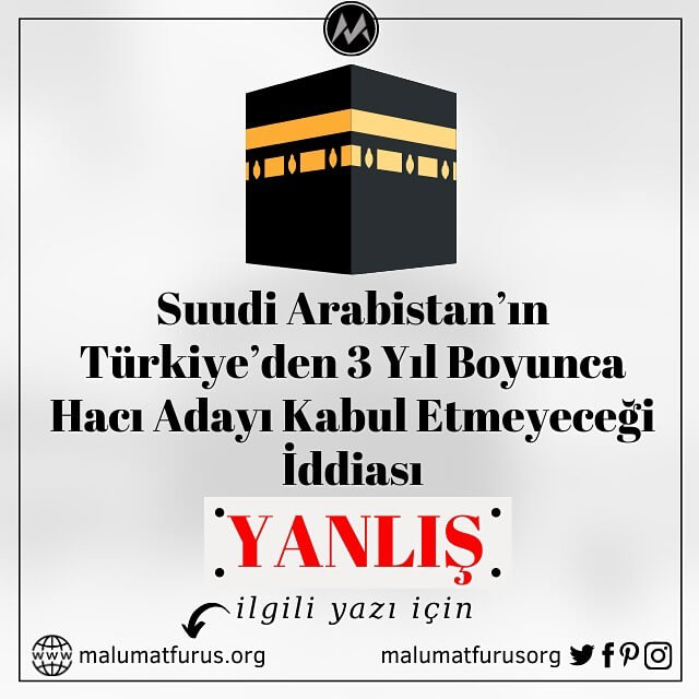 Sosyal medyada paylaşılan Suudi Arabistan’ın Türkiye’den hacı adaylarını 2020-2022 arası 3 yıllık süreçte kabul etmeyeceğine dair bir iddianın viral şekilde paylaşıldığına şahit oluyoruz.