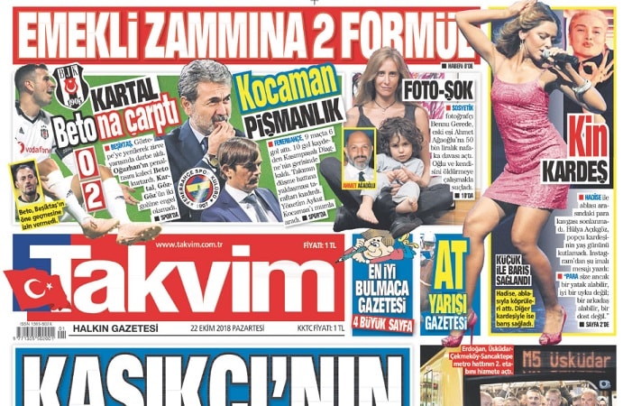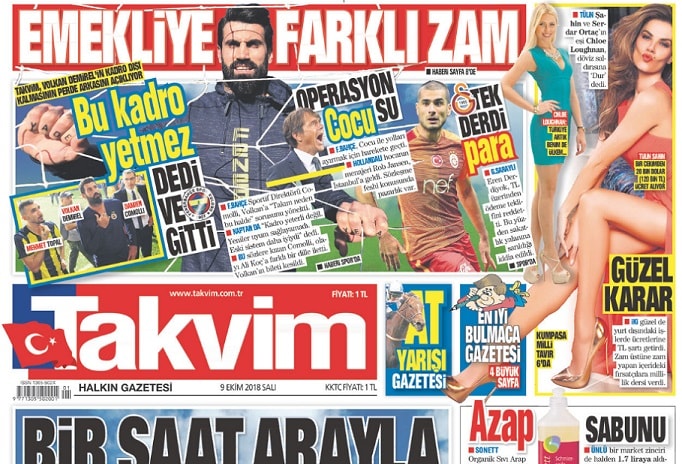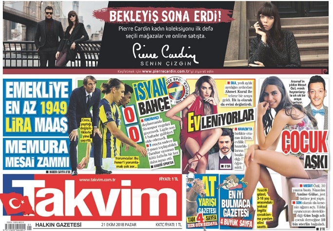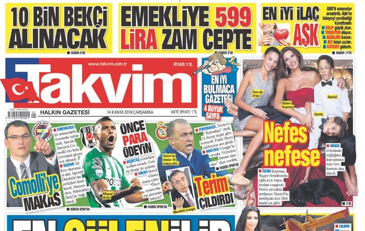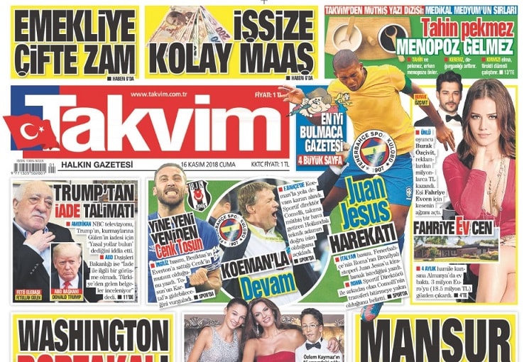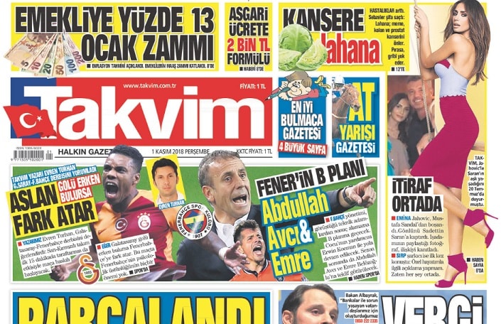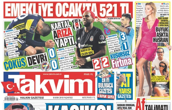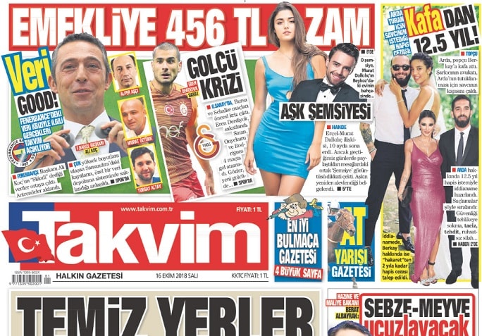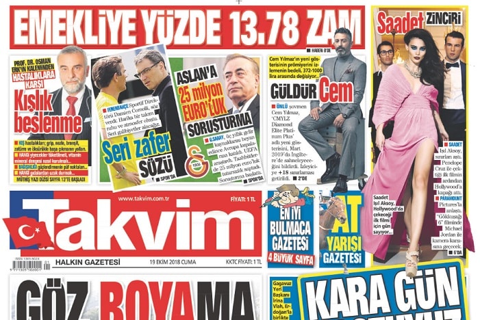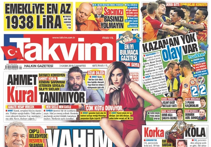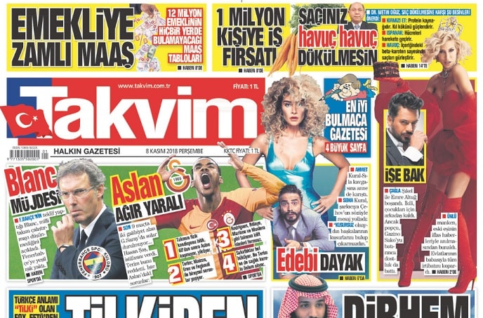 Malumatfuruş’u okuyorsanız, çok büyük ihtimalle Takvim Gazetesi okuru değilsinizdir. Ancak, markette büfede gazetelerin yer aldığı bölümde mutlaka Takvim Gazetesi’ne denk gelmişsinizdir. Bu gazetenin kapak sayfasında dikkatinizi çeken bir şey oldu mu?