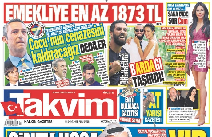 Takvim Gazetesi, her gün sürmanşetten “emekliye zam” içerikli haberleri ve başlıklarıyla emekliler için farklı bir rakam ve yüzde ile zam müjdesi veriyor. Takvim Gazetesi, emeklilerle dalga geçmeyi hobi haline getirmiş görünüyor. 2018 yılı boyunca attıkları manşetleri incelediğimizde Takvim Gazetesinin 365 günün sadece 9’unu es geçerek geriye kalan 356 günün tamamında manşetten emeklilere zam müjdesi verdiğini görüyoruz. Takvim’in yaptığı emekliye zam haberlerindeki zam rakamları ve yüzdelerinin her gün değişiyor olması ise başlı başına bir skandal. Öne sürdükleri zam yüzdeleri ve tutarlarının gerçekleşmemesi ise apayrı bir skandal.