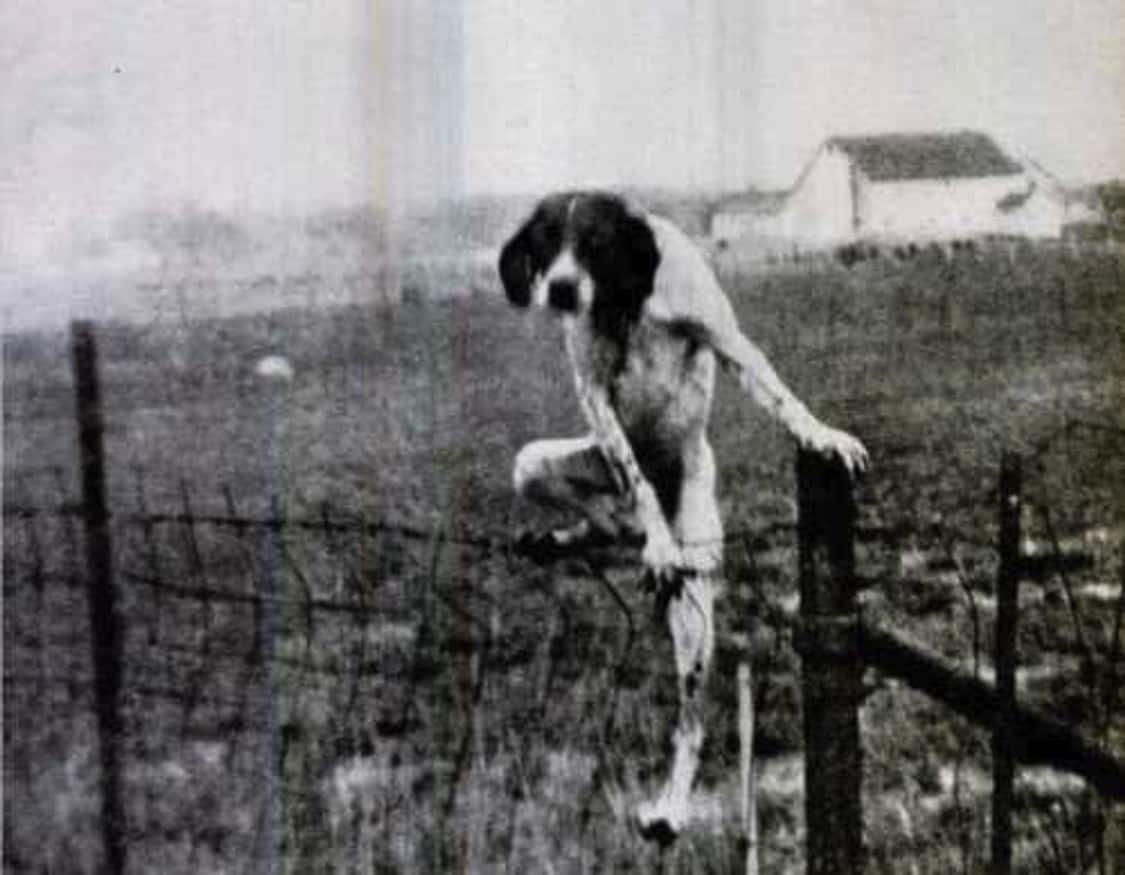 Sosyal medya platformlarında tarihin ilk köpek fotoğrafı olduğu iddiasıyla paylaşılan aşağıdaki bir çitin üzerinde görüntülenen köpek fotoğraf ise sanıldığı gibi “tarihî” değil. Köpeğin hareket hâlinde olduğu bu tip bir fotoğrafı 1840’lı yıllarda kullanılan makineler ile kaydetmek mümkün değildi.