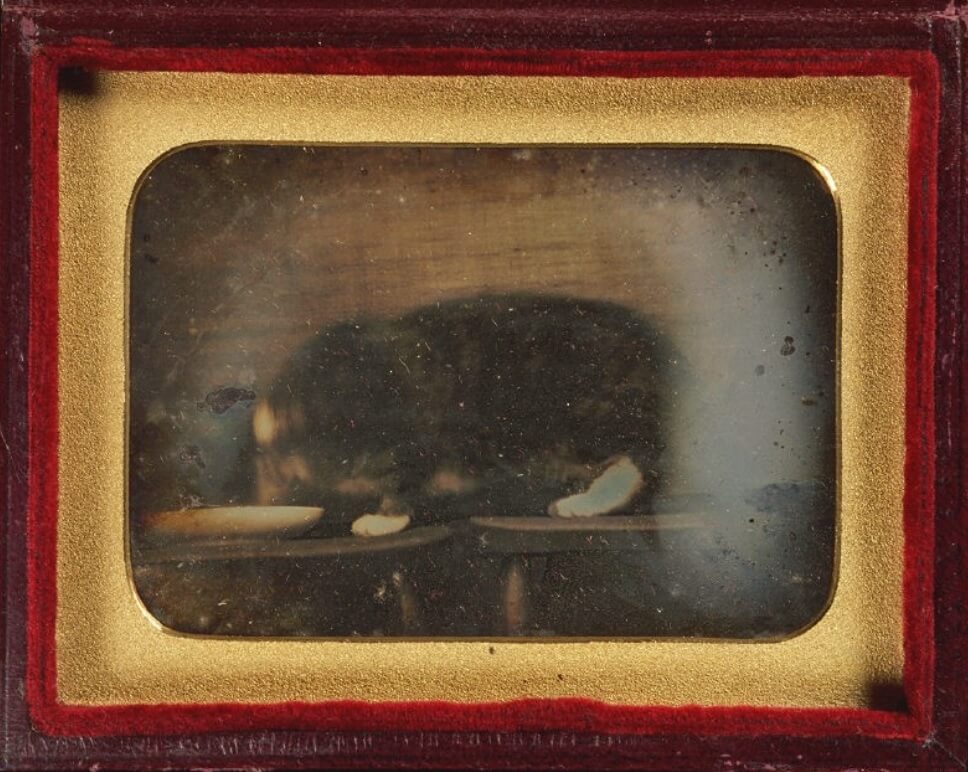 1840-1860 arasına tarihlenen dagerreyotipi “kâseden içen kedi fotoğrafı“…