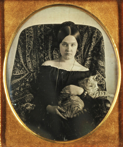 Yine 1850-1855 arasına tarihlenen bir kadının kucağında kediyle birlikte görüntülendiği fotoğraf…