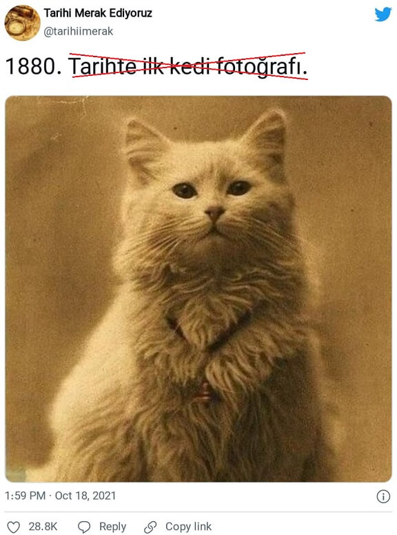 Bu da bize, paylaşılan fotoğrafın tarihin ilk kedi fotoğrafı olmadığını işaret ediyor.