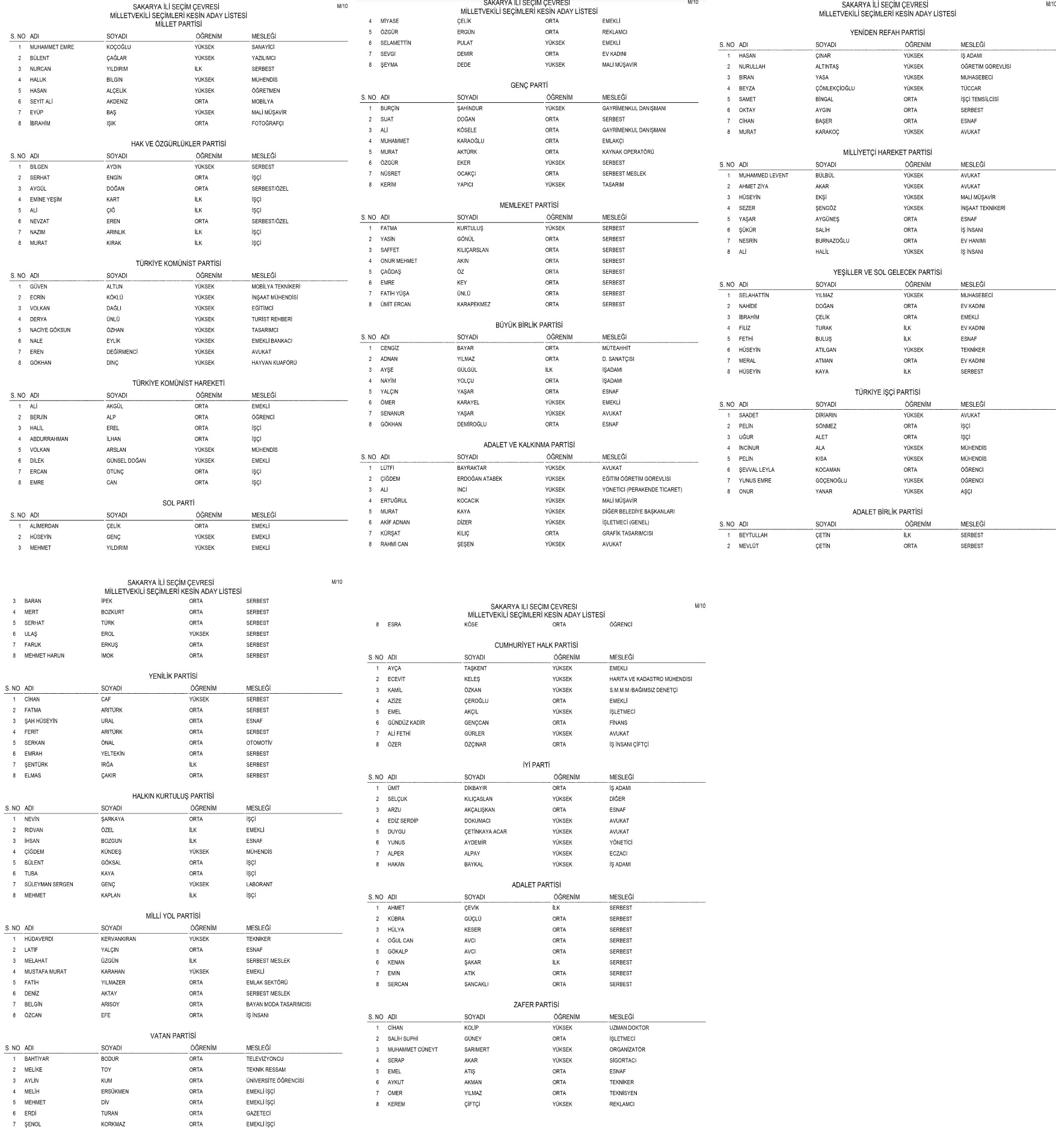 Resmî Gazete’de 19 Nisan 2023 günü yayımlanan Sakarya milletvekili kesin aday listesi