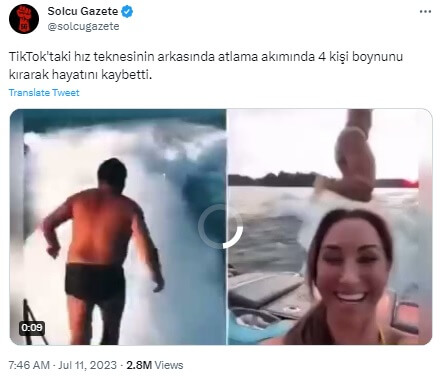 Solcu Gazete: “TikTok’taki hız teknesinin arkasında atlama akımında 4 kişi boynunu kırarak hayatını kaybetti.”