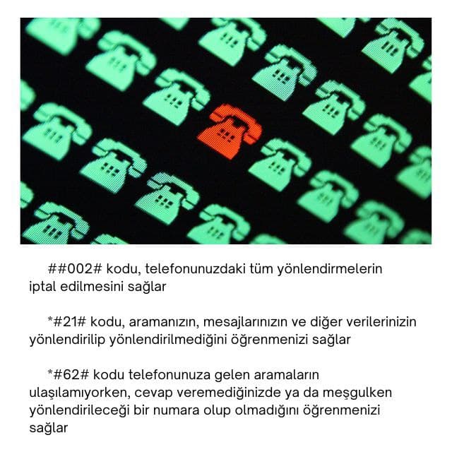##002# kodu, telefonunuzdaki tüm yönlendirmelerin iptal edilmesini sağlar.