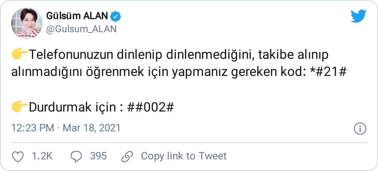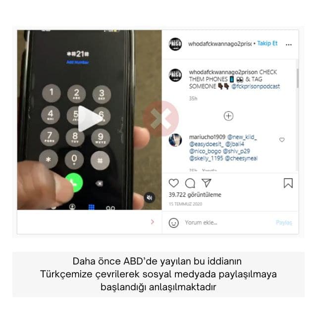 Telefonun dinlenip dinlenmediğini anlamak için işe yaradığı iddiası ile bu yolu aktaran paylaşımlardan bir örnek şu şekilde sunulabilir: