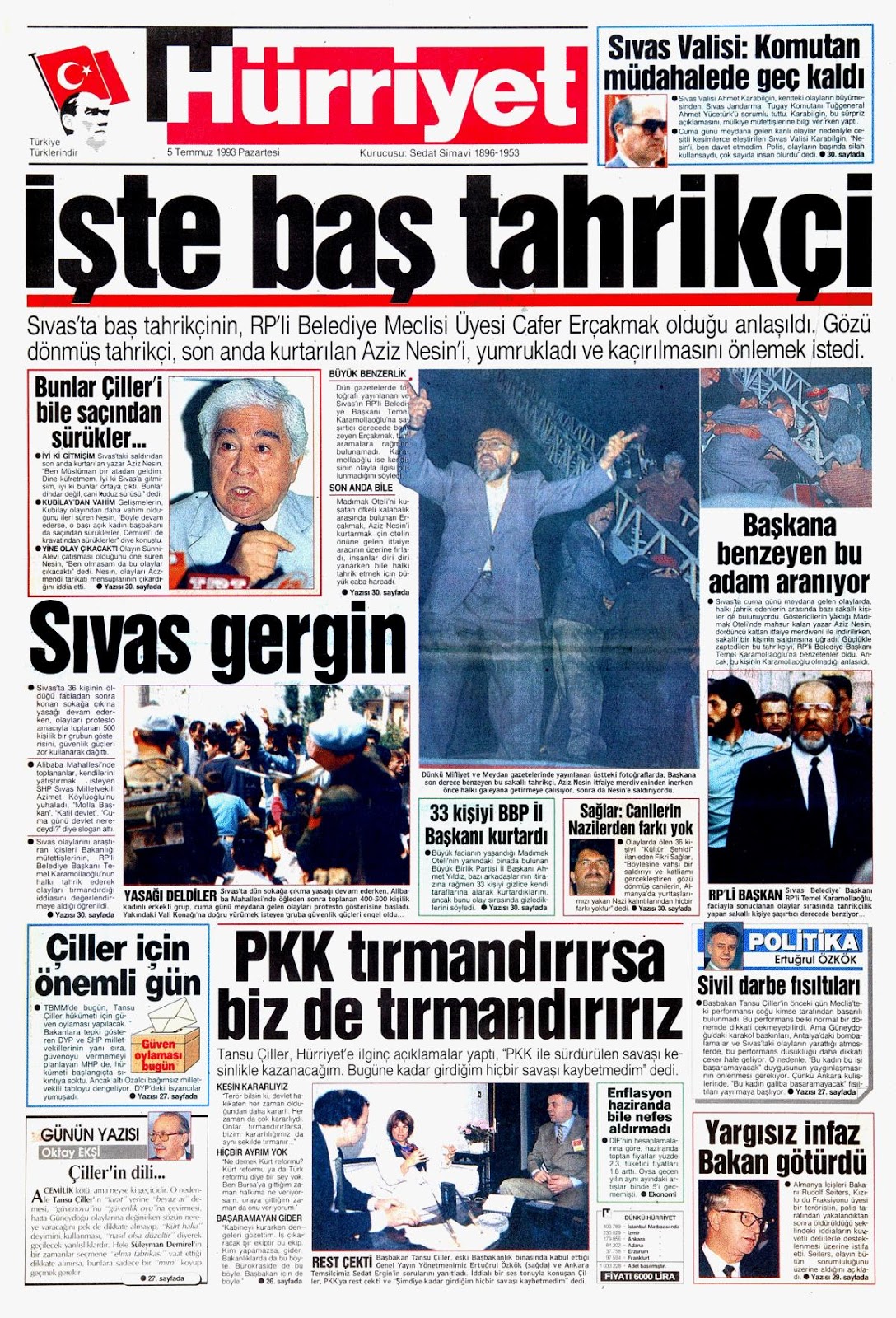 5 Temmuz 1993 tarihli Hürriyet gazetesi kapak sayfasında bu duruma şöyle değinmişti: