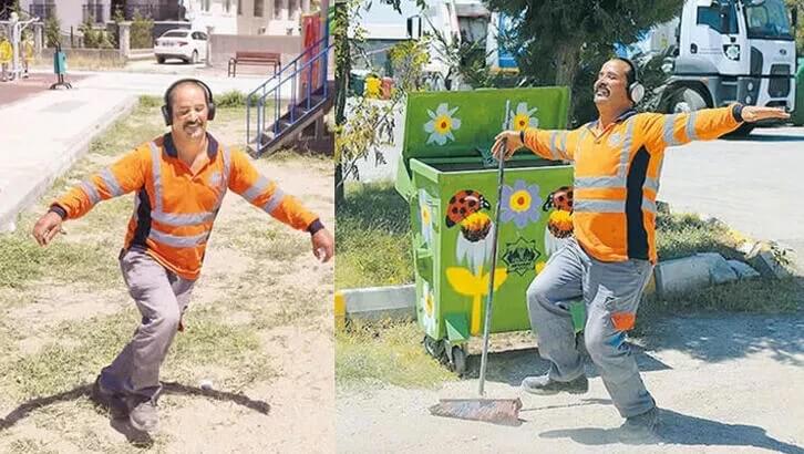 Aksaray Belediyesi’nde temizlik işçisi olarak çalışan Hamit Karakaya’nın mesai esnasında dans ederken görüntülendiği videolar sosyal medyada ilgi odağı oldu.