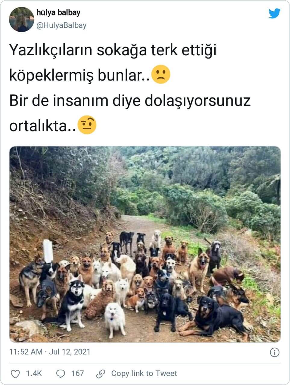 “Yazlıkçıların sokağa terk ettiği köpeklermiş bunlar..🙁 Bir de insanım diye dolaşıyorsunuz ortalıkta..🤨”