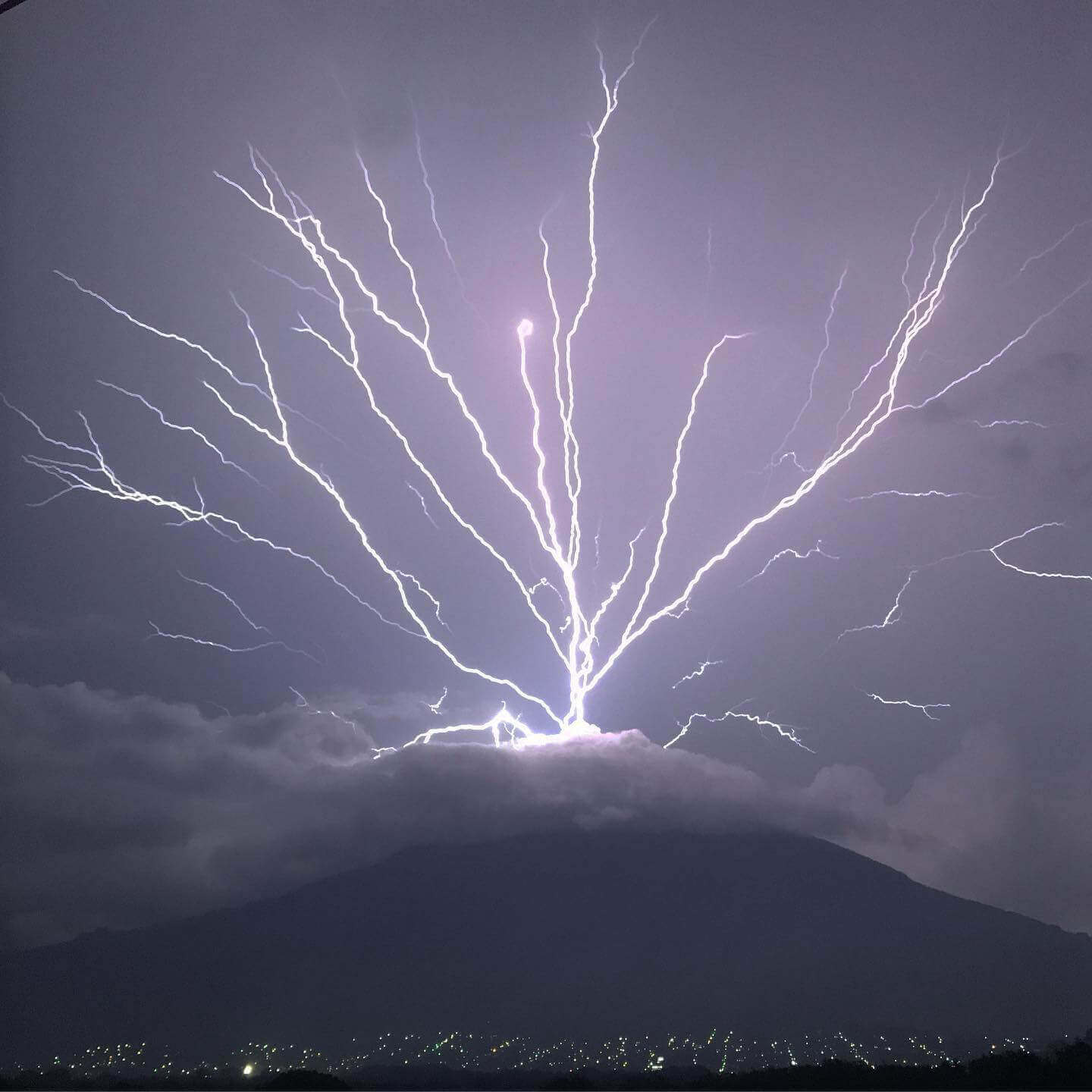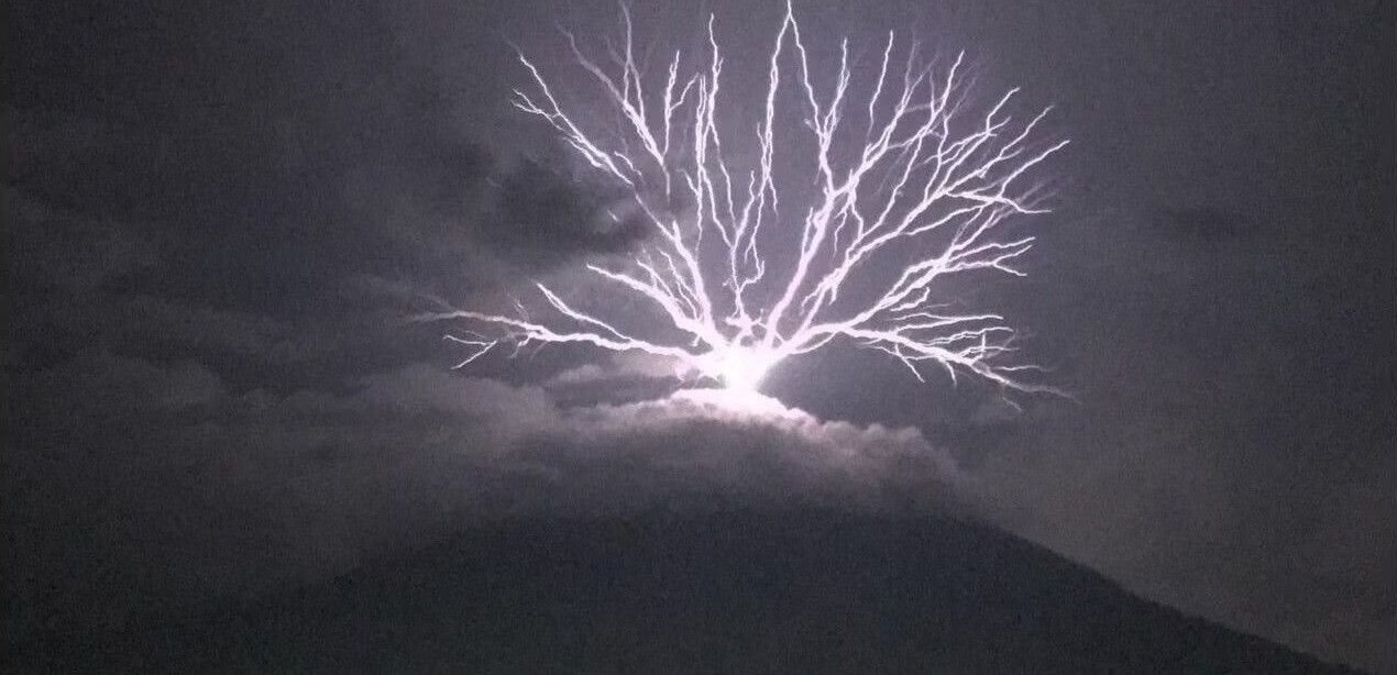 Volkanik patlama sonucu ortaya çıkan eriyik ve aşırı miktarda volkanik gazın etkisiyle oluşan büyük gaz bulutunun elektriksel yüküyle tersine şimşek/yıldırım (upward lightning) doğa olayı gerçekleşmektedir.