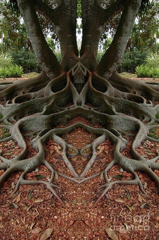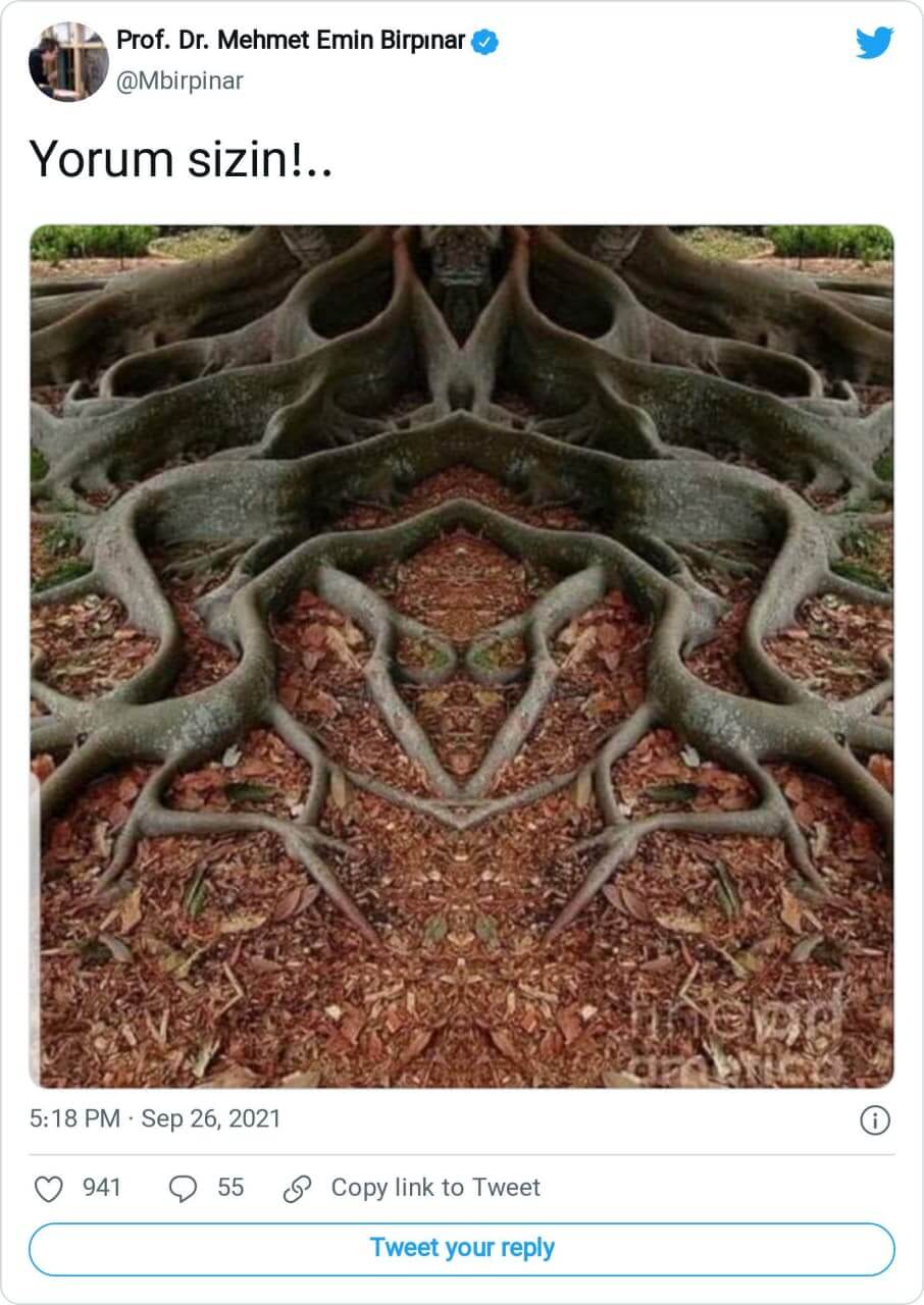 Örneğin, gerçek hayattan sanılan simetrik ağaç görseli aslında ABD’nin Florida eyaletindeki Sarasota şehrindeki banyan ağacının Mike Nellums tarafından 18 Şubat 2012 günü çekilen fotoğrafı kullanılarak oluşturulmuştu.