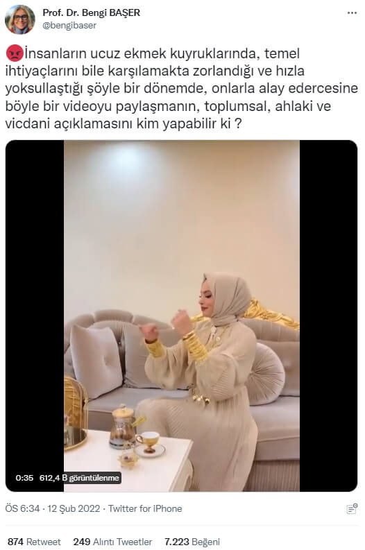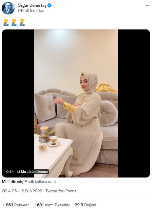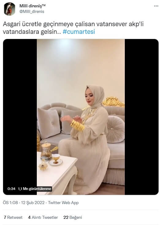 Bu açıklamanın ardından bilekleri ve boynu altın takı ile dolu bir tesettürlü kadının görüldüğü video sosyal medyada dolaşıma girdi.