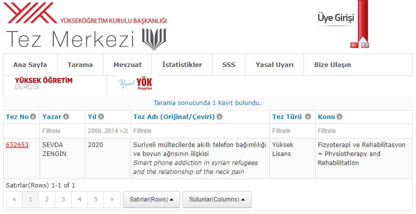 Bu gibi durumlarda YÖK Tez Merkezi üzerinden sorgu yaparak durumu vuzuha kavuşturma imkânına erişebilmiştik.