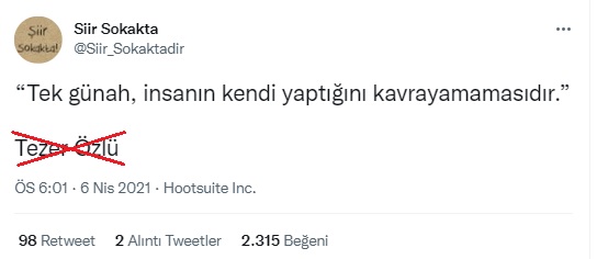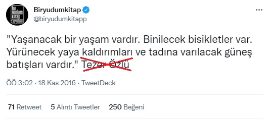 Tezer Özlü’nün izinden gidip kendi varoluş serüvenini inşa edecek kadar önemsediği bir yazarın sözlerinin sosyal medya kullanıcılarının anlık arzularına hizmet etmesi yüzünden yazar erozyonuna uğramasına benzer diğer vakalara Metinlerarasılık Bağlamında Sahibi El Değiştiren Sözler başlıklı yazımızda değinmiştik.