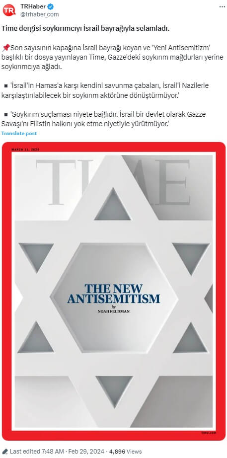 Cerrah Güner Fuzûlî (@cgfuzuli): “Time dergisi kapağı!.. YENİ ANTİSEMİTİZM Hazırlanın! İnsanlığa karşı yeni büyük bir saldırı geliyor.”