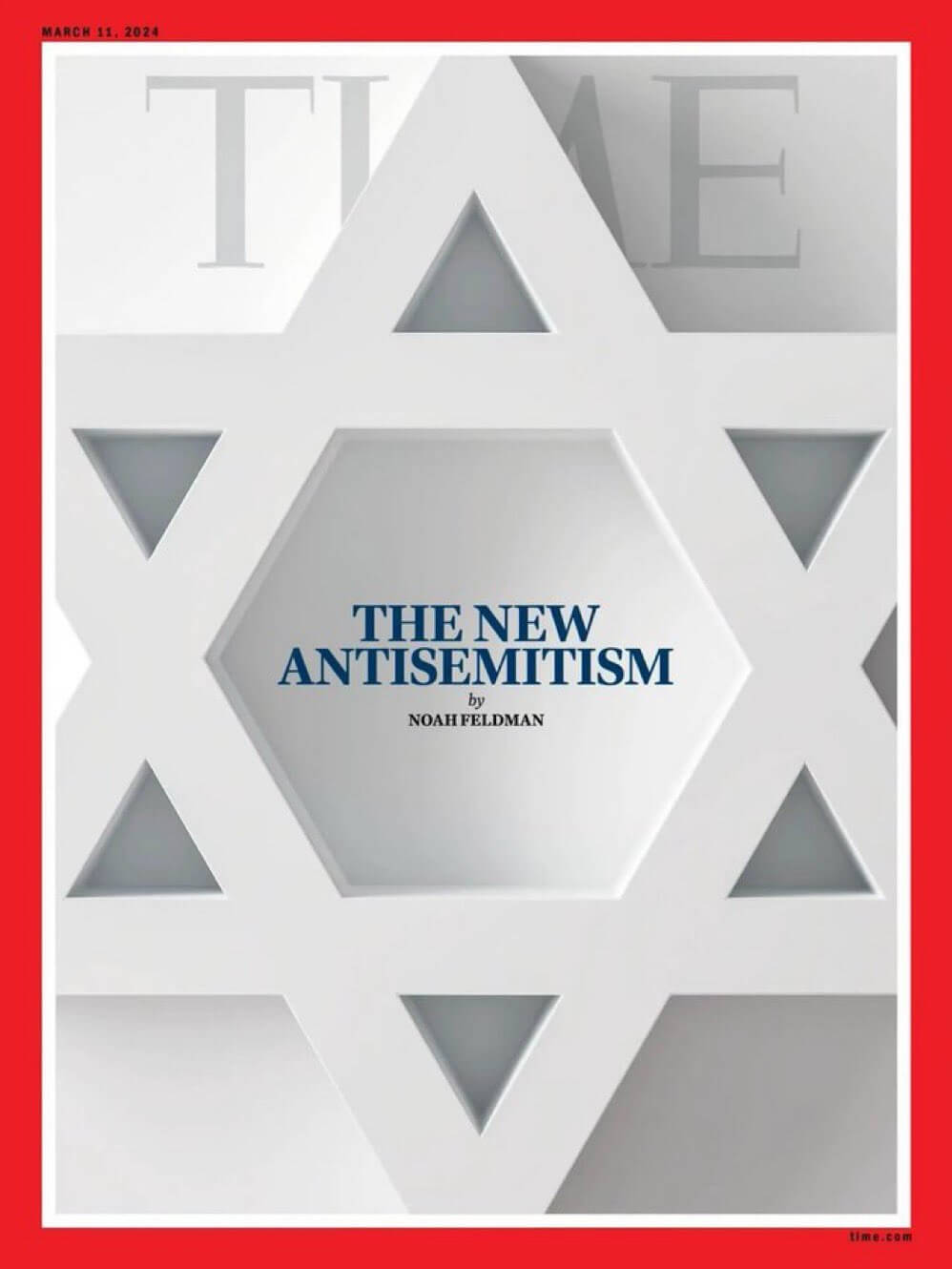 İsrail’in bayrağında yer alan Davud’un Yıldızı ve “Yeni Antisemitizm” (“The New Antisemitism”) başlığını taşıyan, Time dergisinin İsrail’in Gazze’de süregelen katliamına karşı çıkanları “antisemitik” olarak etiketlediği ileri sürülen görsel şöyle: