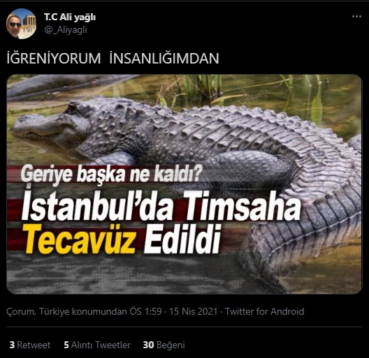 timsah tecavüz iddiası