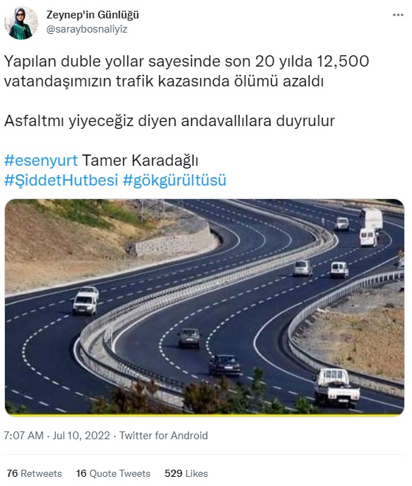 “Yapılan duble yollar sayesinde son 20 yılda 12,500 vatandaşımızın trafik kazasında ölümü azaldı Asfaltmı yiyeceğiz diyen andavallılara duyrulur