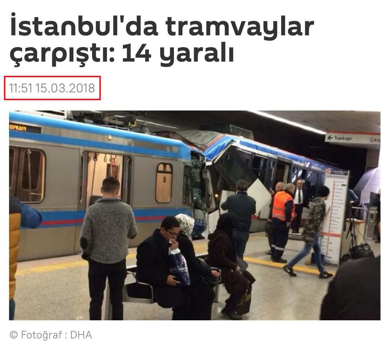 Sosyal medya platformlarında, İstanbul Büyükşehir Belediyesi tarafından işletilen hatta iki tramvayın bir istasyonda çarpıştığı kazadan görüntü güncel bir kazaya ait olduğu vurgusuyla dolaşıma sokulmuş.