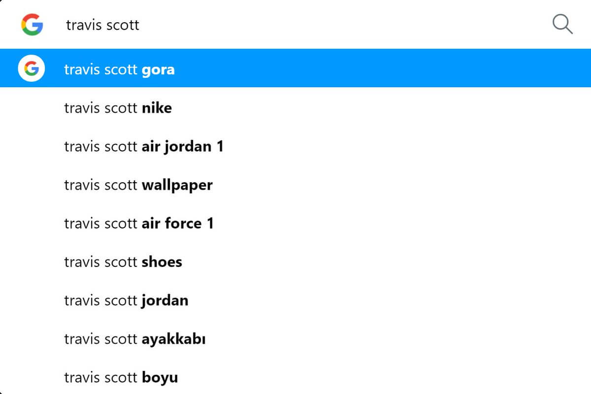 Google’da yapılan “Travis Scott” ile ilgili Türkçe aramalarda “Gora”nın ön plana çıktığı görülüyor