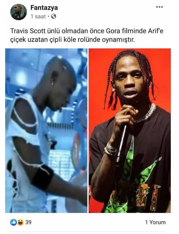 ABD’li rapçi Travis Scott ünlü olmadan önce Gora filminde Arif’e çiçek uzatan köle rolünde oynamadı. Bu iddia, Twitter’ın ünlü yaman trollü Teyfik Sikret‘in uydurmasıdır.