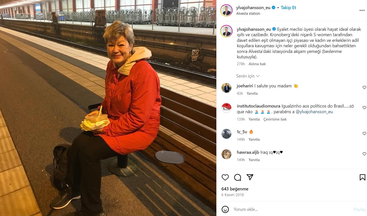 pruva74 (@pruva74): “Fotoğrafta işten çıkıp evine gitmek için elinde sandviç ile tren bekleyen bu kadın kim diye merak ediyorsunuzdur, aydınlatayım. İsveç Çalışma Bakanı Eloa Yohanson. Bize ne kadar yabancı değil mi?”