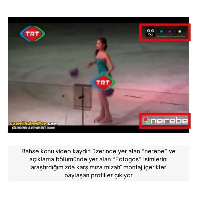 Bahse konu video kaydın üzerinde yer alan “nerebe” ve açıklama bölümünde yer alan “Fotogos” isimlerini araştırdığımızda karşımıza mizahî montaj içerikler paylaşan profiller çıkıyor.