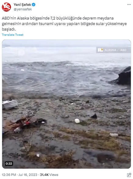 Paylaşılan videoların ABD’nin Alaska bölgesinde 16 Temmuz 2023 günü meydana gelen 7,2 büyüklüğünde depremin ardından oluşan tsunamiye ait olduğu iddiası doğru değil.