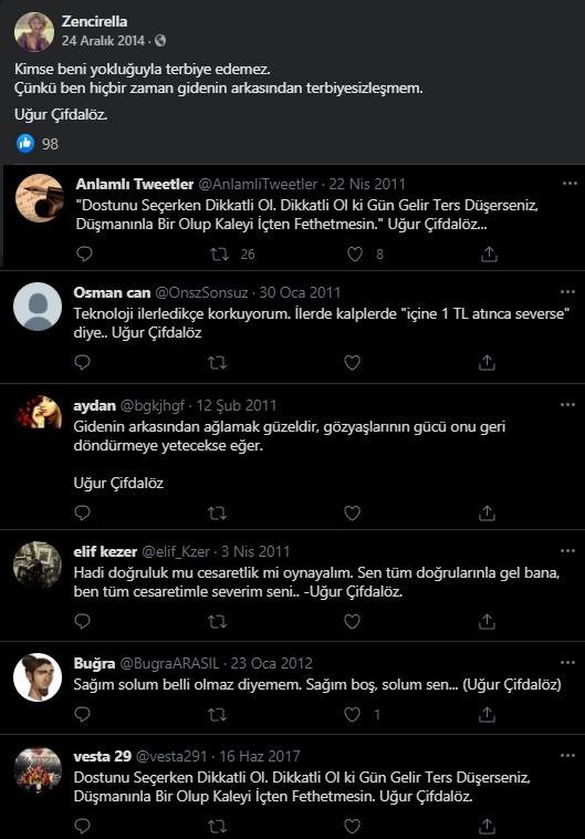 U. Çifdalöz ismini araştırdığımızda karşımıza sosyal mecrada söz ve şiirleriyle tanınan Uğur Çifdalöz çıkıyor.